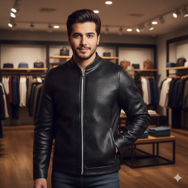 کاپشن چرم طرح پوست مار ساده مردانه مدل Yasan