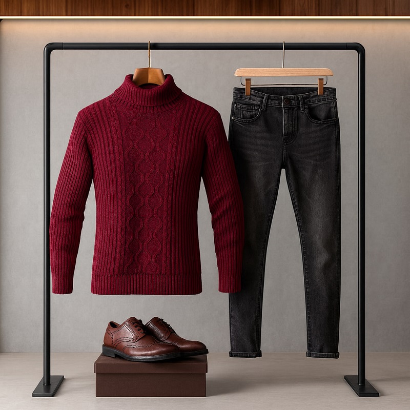 پلیوربافت مردانه یقه اسکی مدل Hakan-زرشکی
