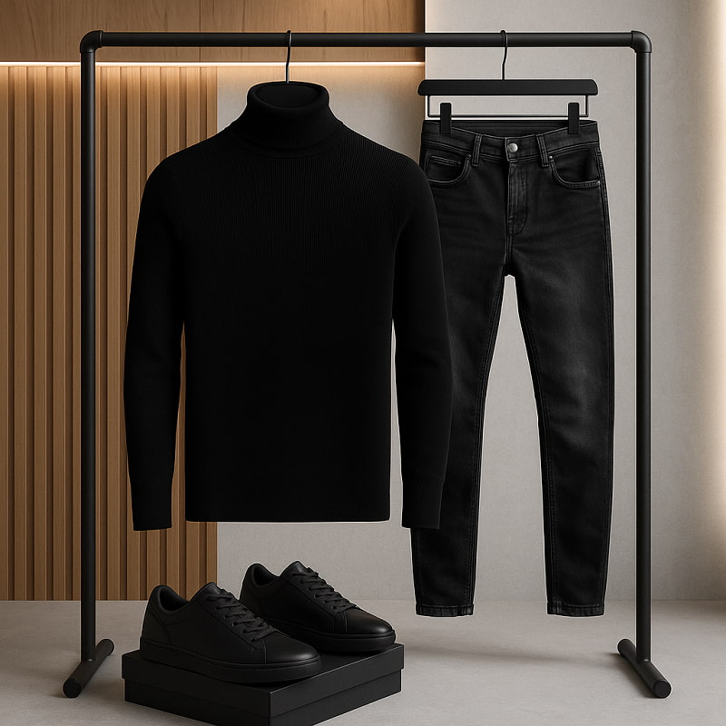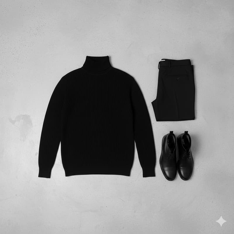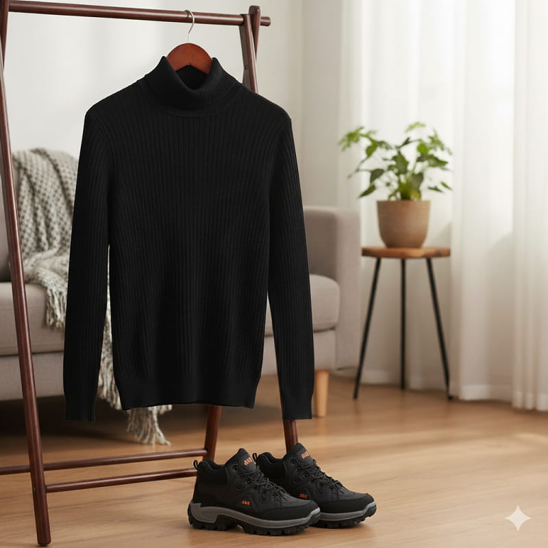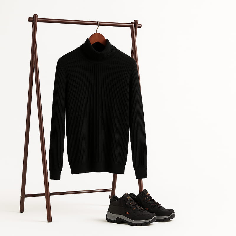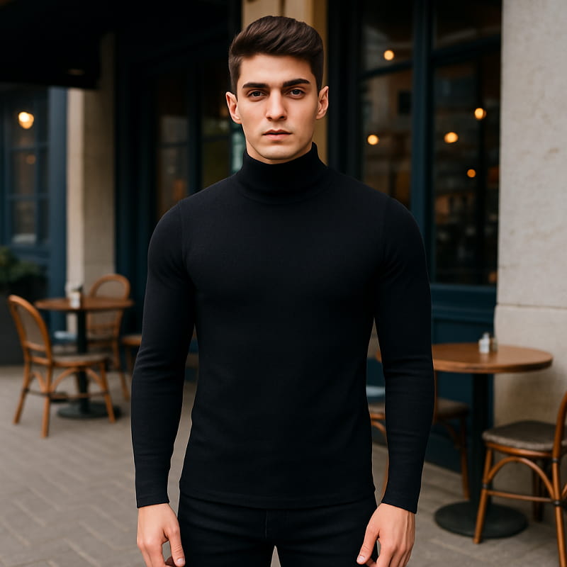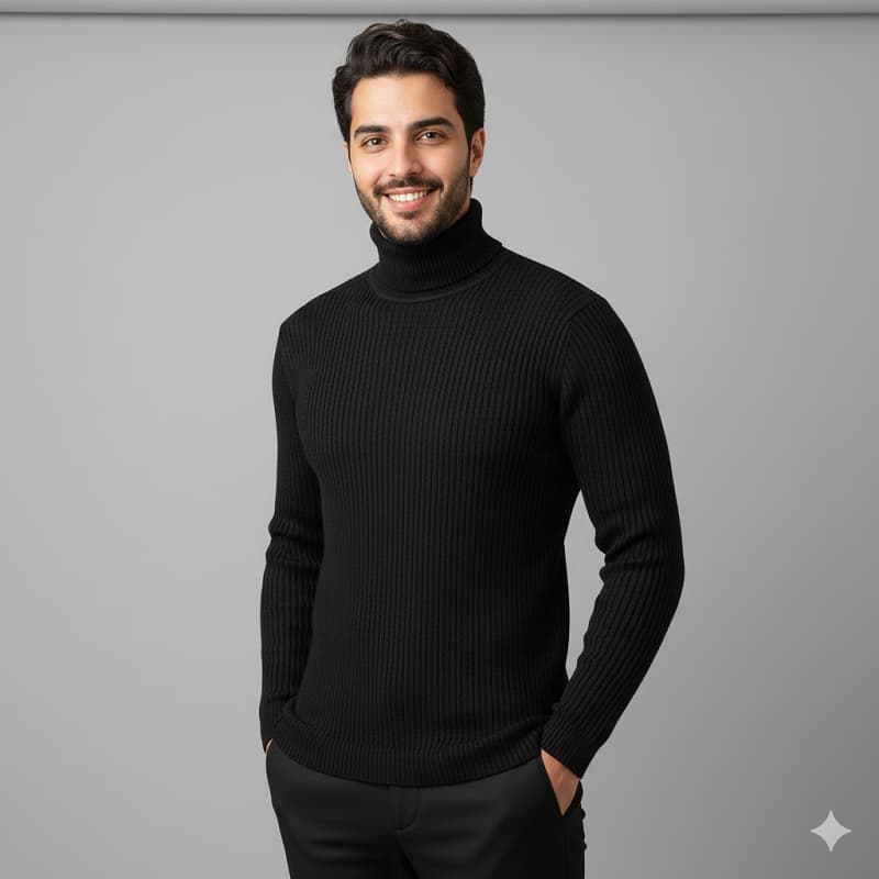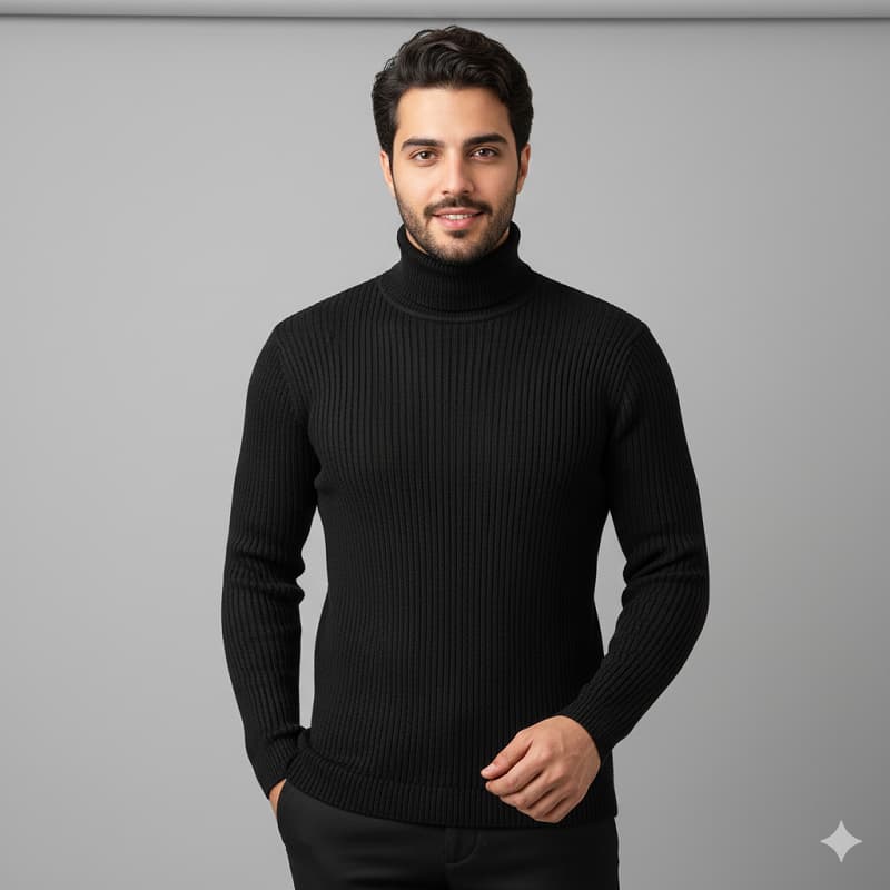 پلیور بافت یقه اسکی مردانه مدل Ersan رنگ مشکی